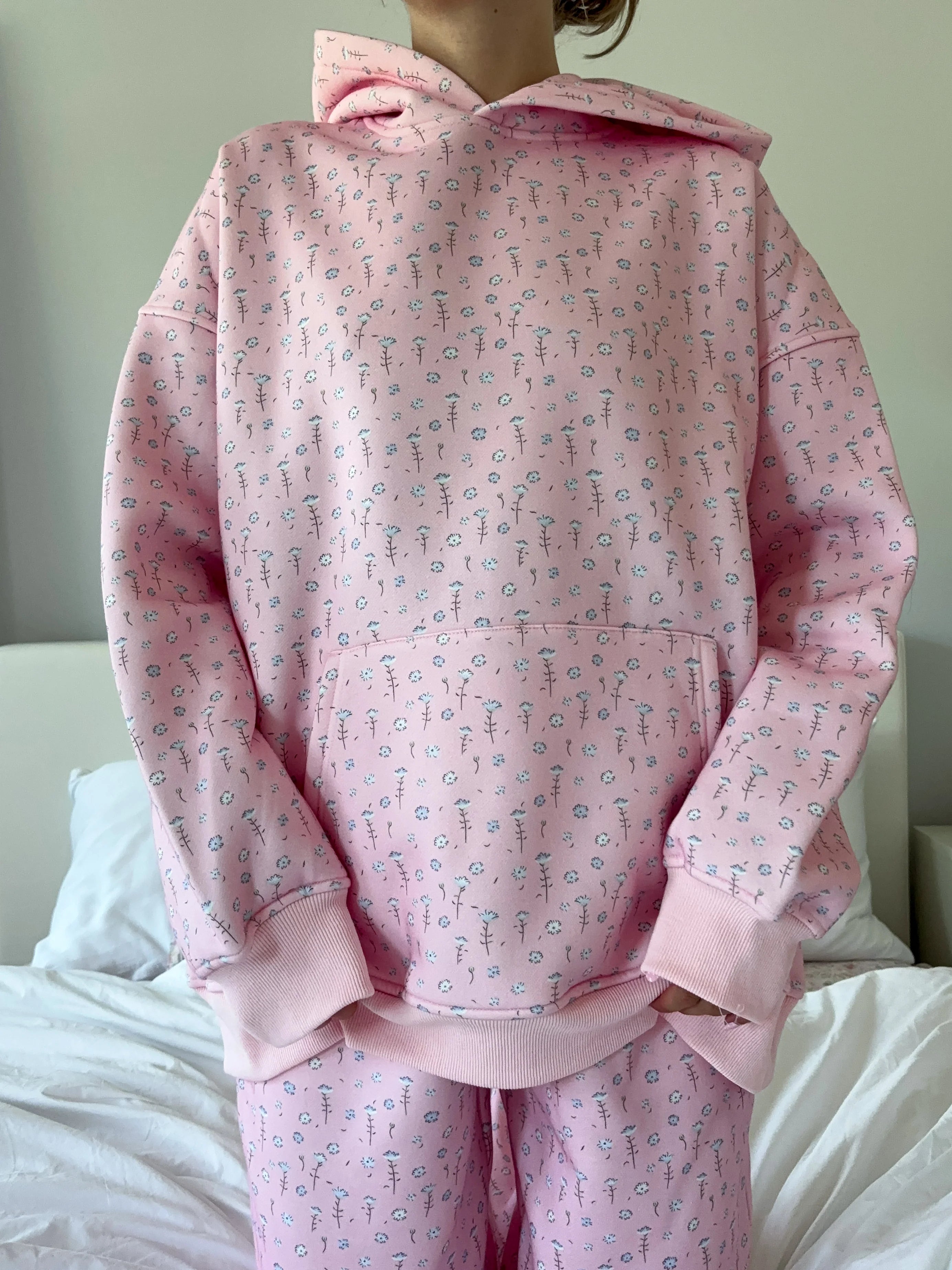 In these photos, Nela is wearing a size Large hoodie and Medium pants.