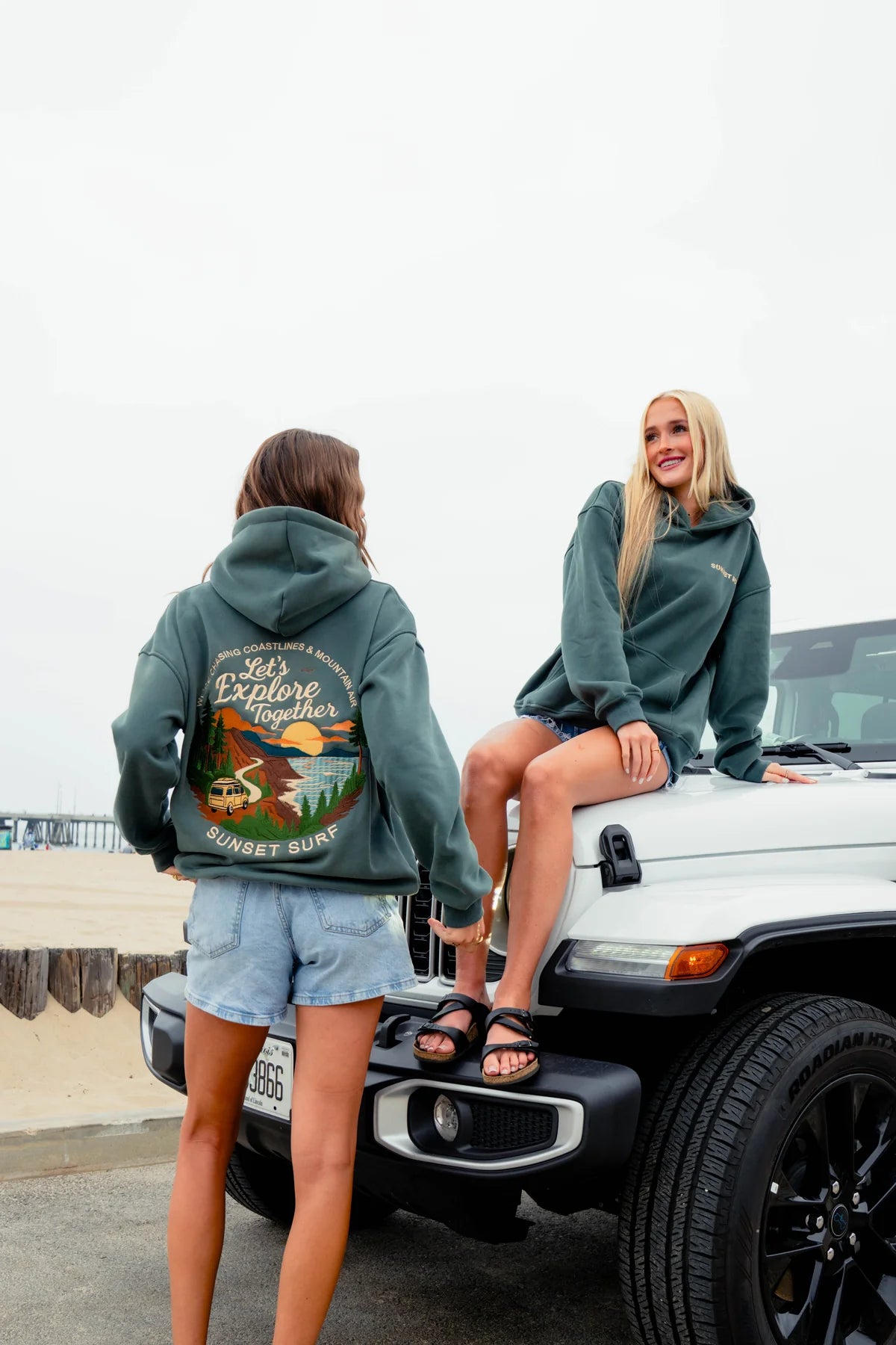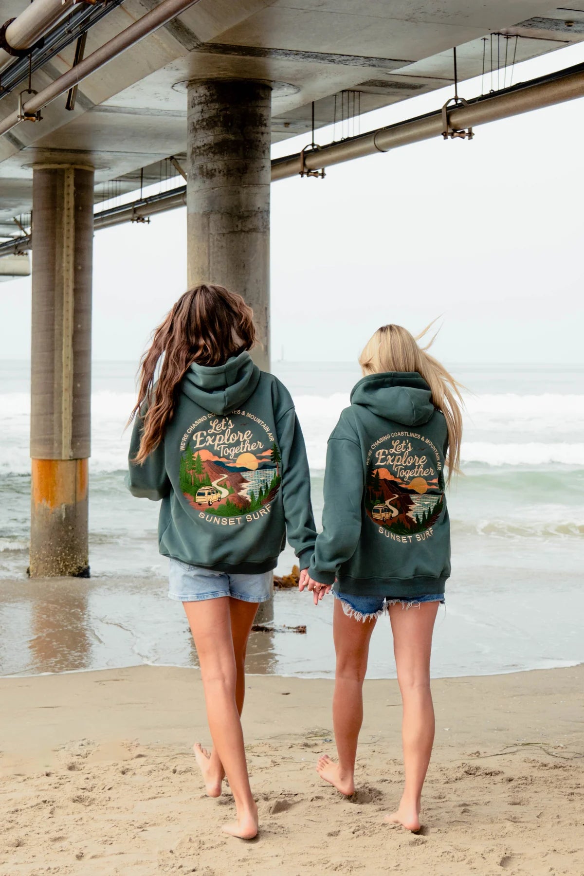 The timeless deep green hue evokes a serene, coastal vibe that pairs perfectly with jeans, leggings, or shorts. Practical features like the roomy kangaroo pocket and adjustable drawstring hood add both function and a laid-back, finished look to any outfit.