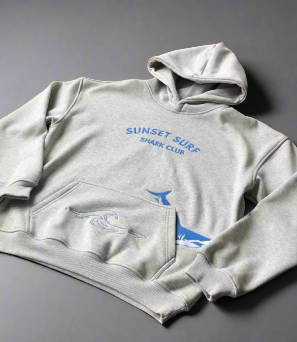 Make a powerful statement with this fully embroidered Shark Hoodie. Designed for ultimate comfort and durability, its thick fabric and intricate embroidery celebrate the majesty of ocean wildlife. This piece is more than a hoodie—it's a wearable reminder for shark conservation awareness.
