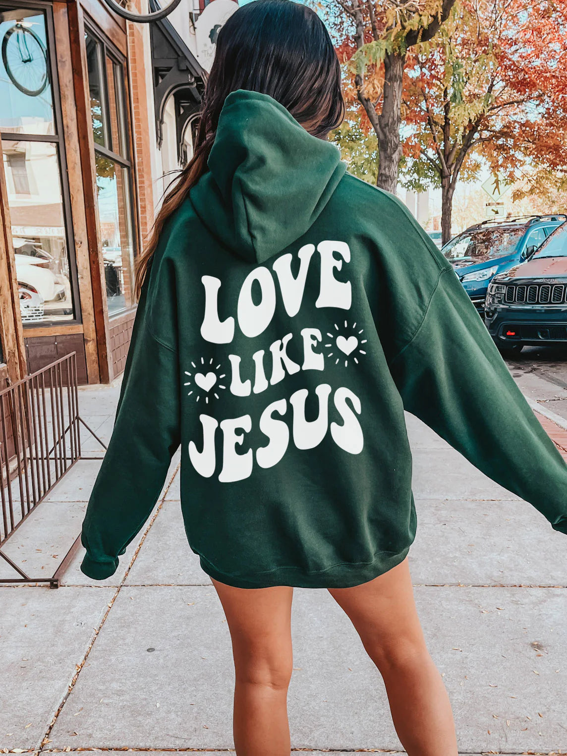 Wear your heart on your sleeve with this effortlessly stylish Love Like Jesus hoodie. Designed for ultimate comfort and a trendy, oversized fit, it’s the perfect piece for cozy days and meaningful style. This preppy Christian aesthetic hoodie is your new go-to for relaxed, faith-inspired outfits. SHIPS FREE!