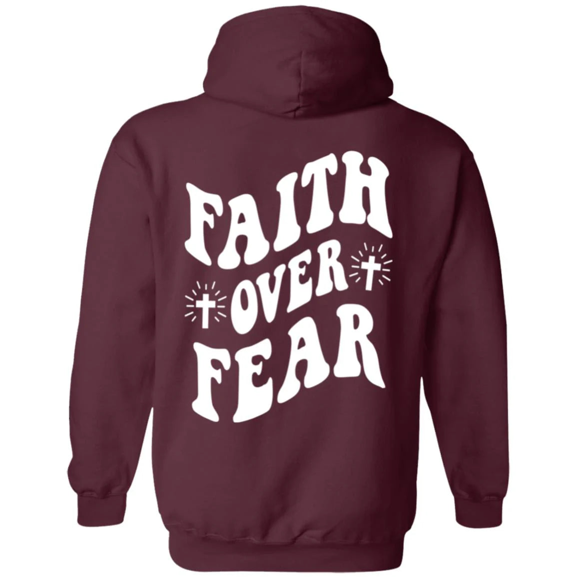 Wear your faith with confidence in this cozy Faith Over Fear hoodie. Designed for comfort and style, this Christian sweatshirt is perfect for everyday inspiration and a relaxed, oversized look. SHIPS FREE!