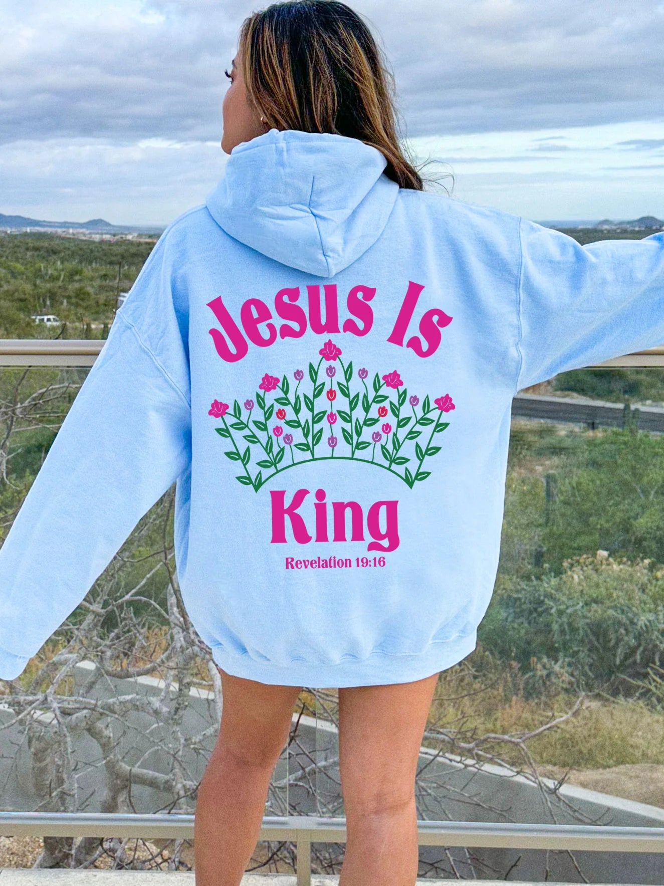 Wear your faith with effortless style in this beautiful Jesus Is King hoodie. The delicate floral crown design creates a soft and inspiring statement piece perfect for everyday comfort. Crafted for a super-soft feel, this Christian sweatshirt is your new go-to for cozy, meaningful style. Choose your usual size for a relaxed fit or size up for a trendy, oversized look. SHIPS FREE!