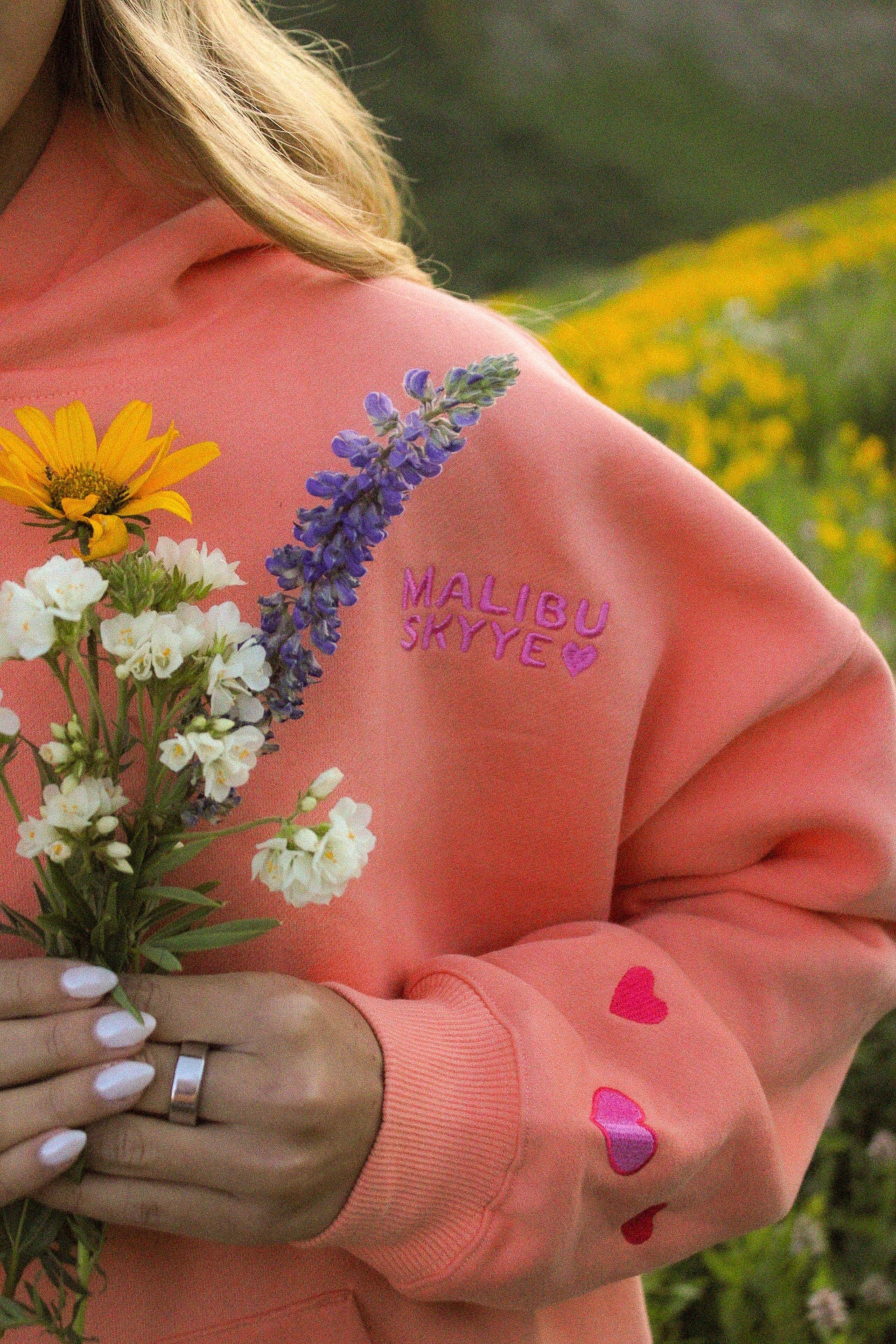 Wrap yourself in a warm, inspirational hug with this beautifully embroidered hoodie. Each vibrant floral detail and uplifting word is stitched with care, creating a masterpiece meant to remind you to embrace your present moment.