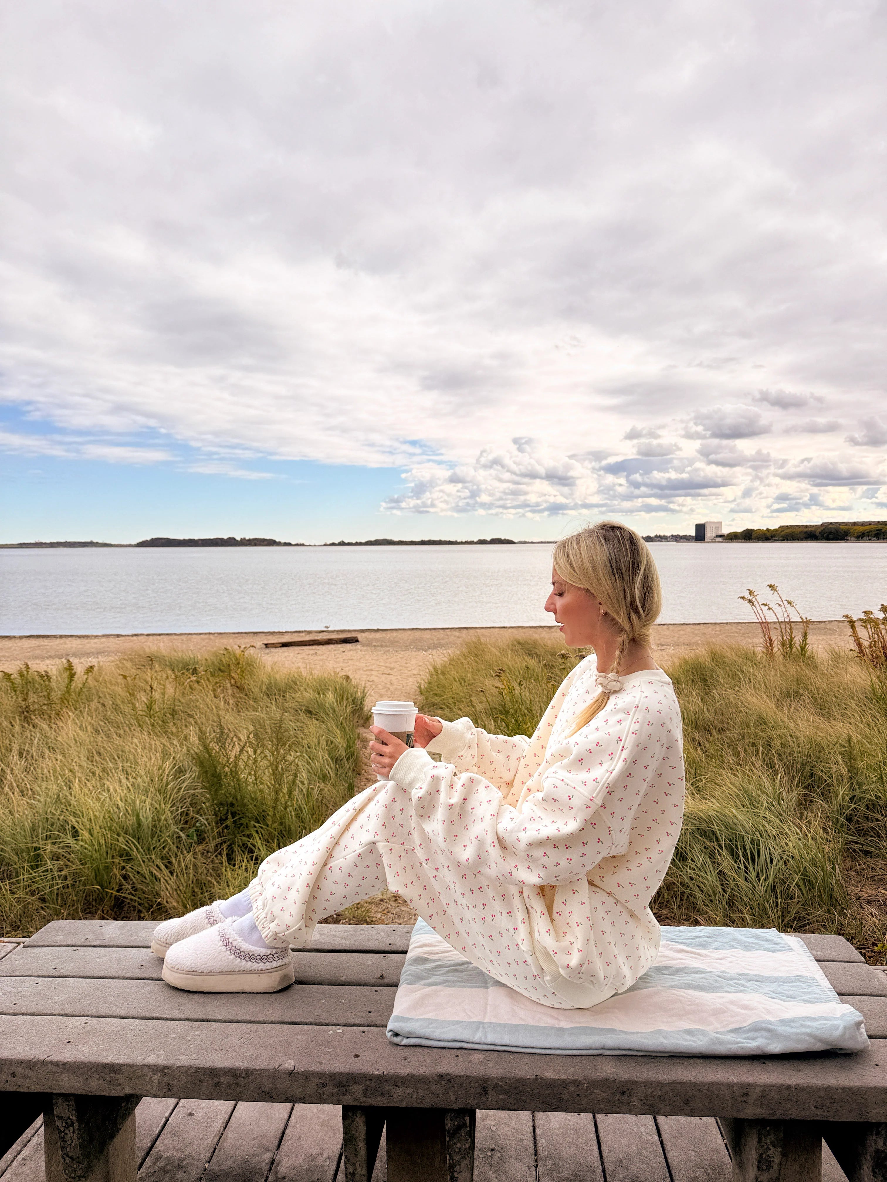 In these photos, Nela is wearing a size Large for a perfectly cozy, oversized look.