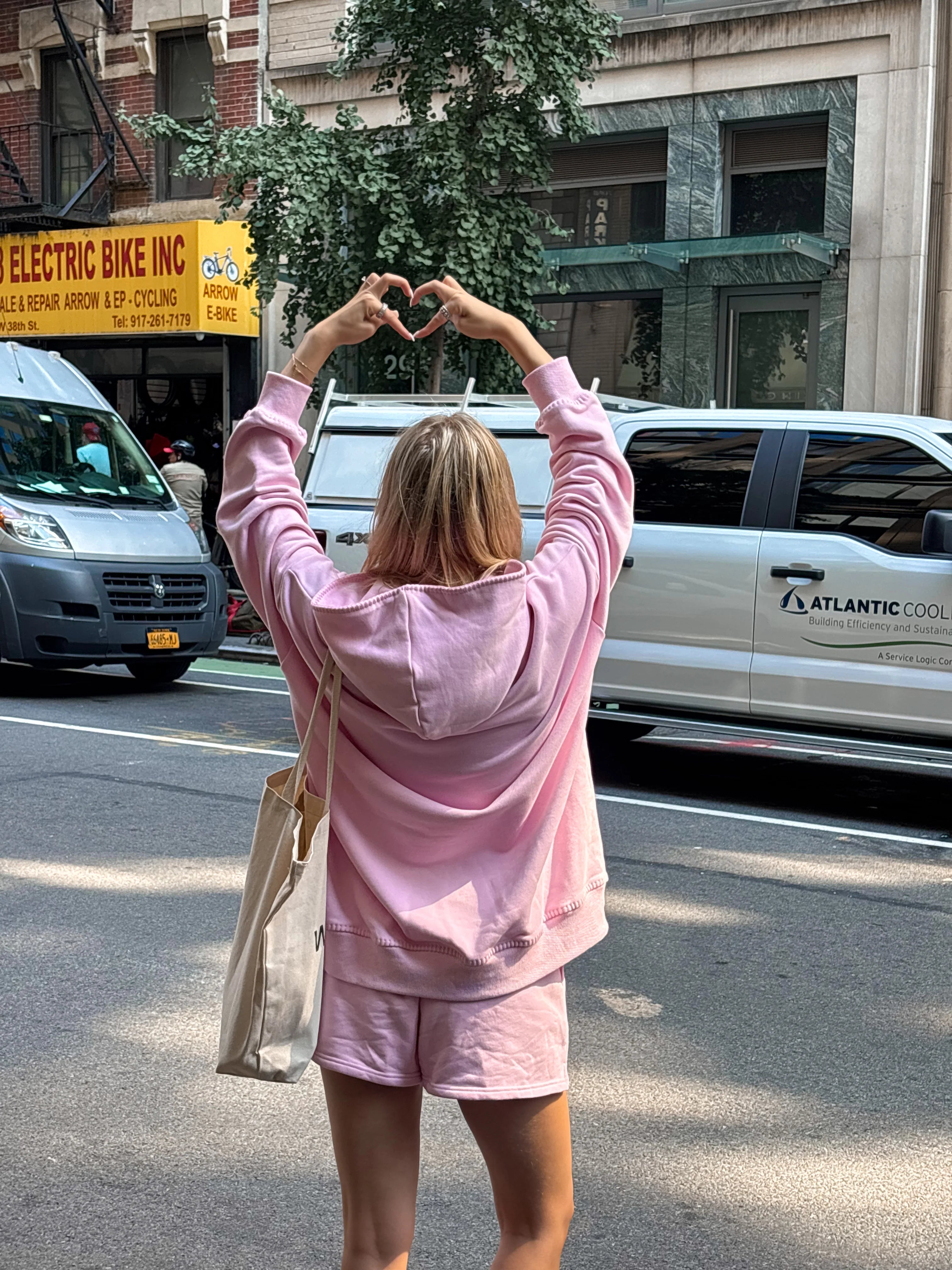 Nela is wearing a size Large for an intentionally oversized, cozy silhouette.
