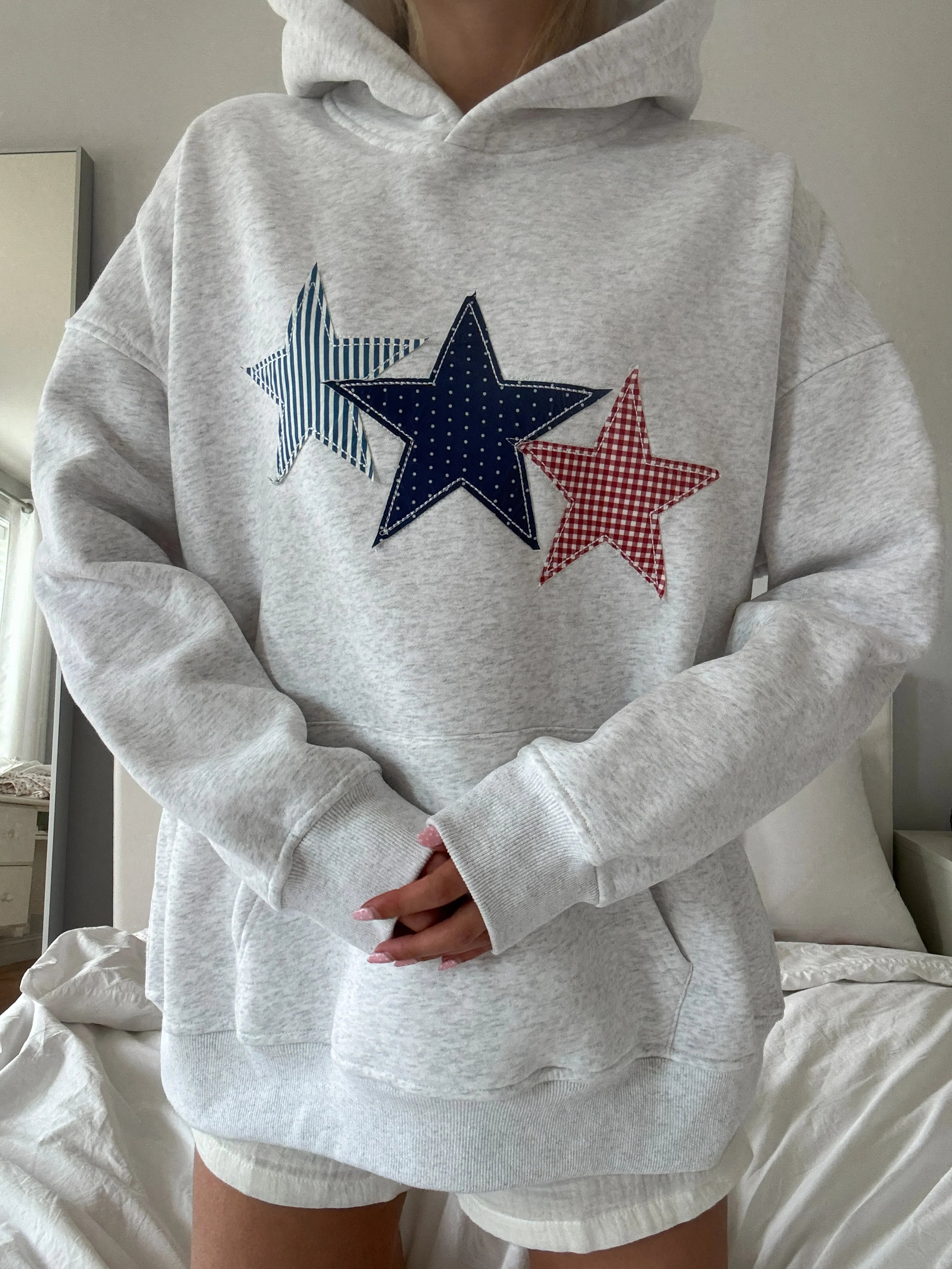 In this photo, Nela is wearing a size Large for a cozy, oversized silhouette.