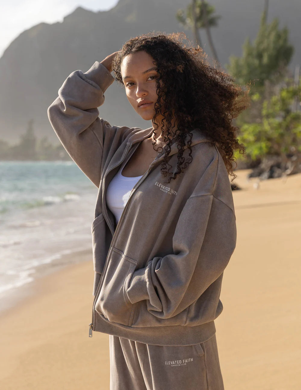 Wrap yourself in divine comfort with our signature full-zip hoodie, crafted from 100% pure cotton for unmatched softness. The relaxed silhouette and thoughtful design details create a versatile piece that moves seamlessly from cozy mornings to your daily adventures. This hoodie makes a bold, comfortable statement for your everyday wardrobe.