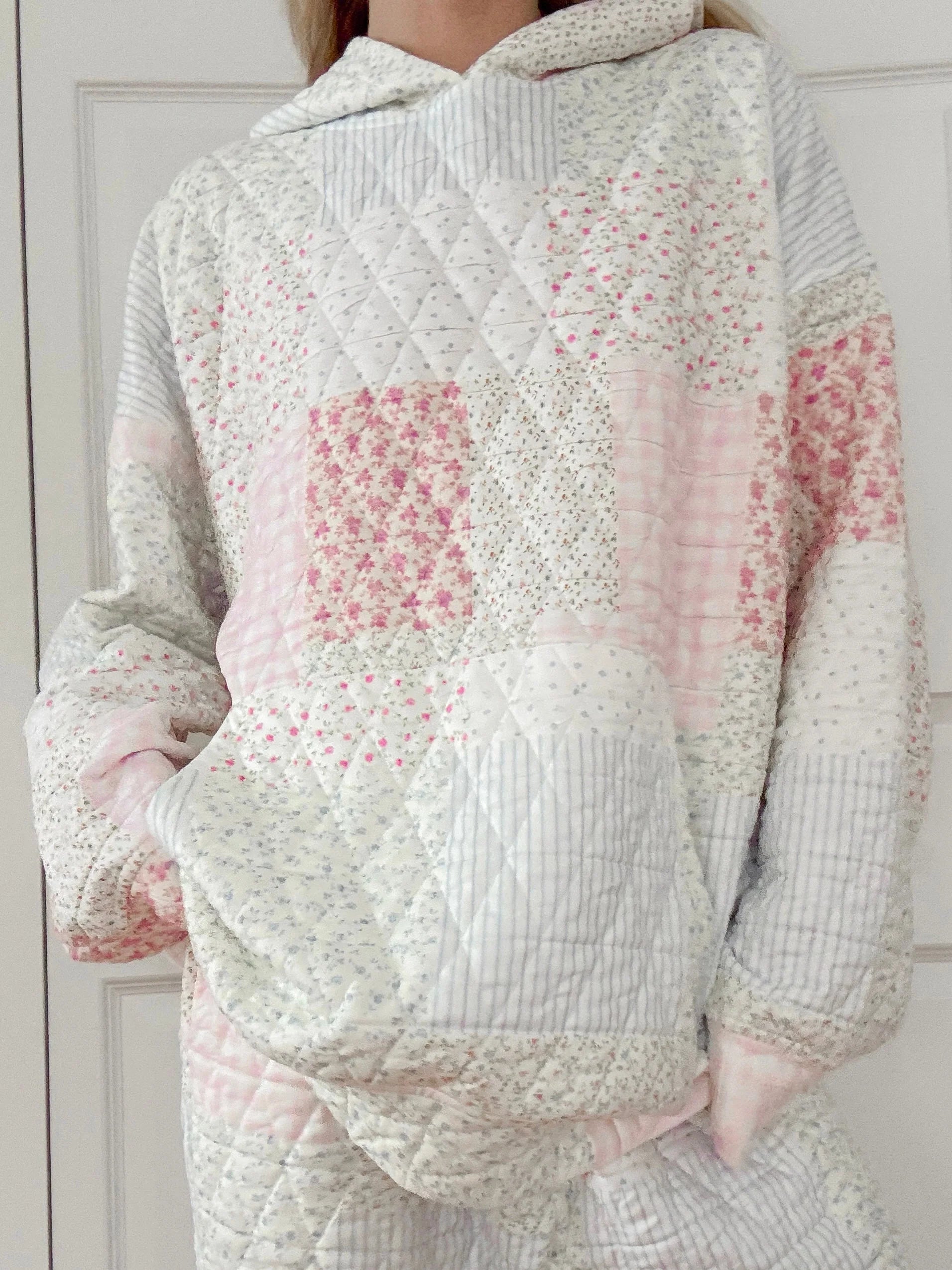 In these photos, Nela is wearing a size Large in the hoodie and Medium in the pants.