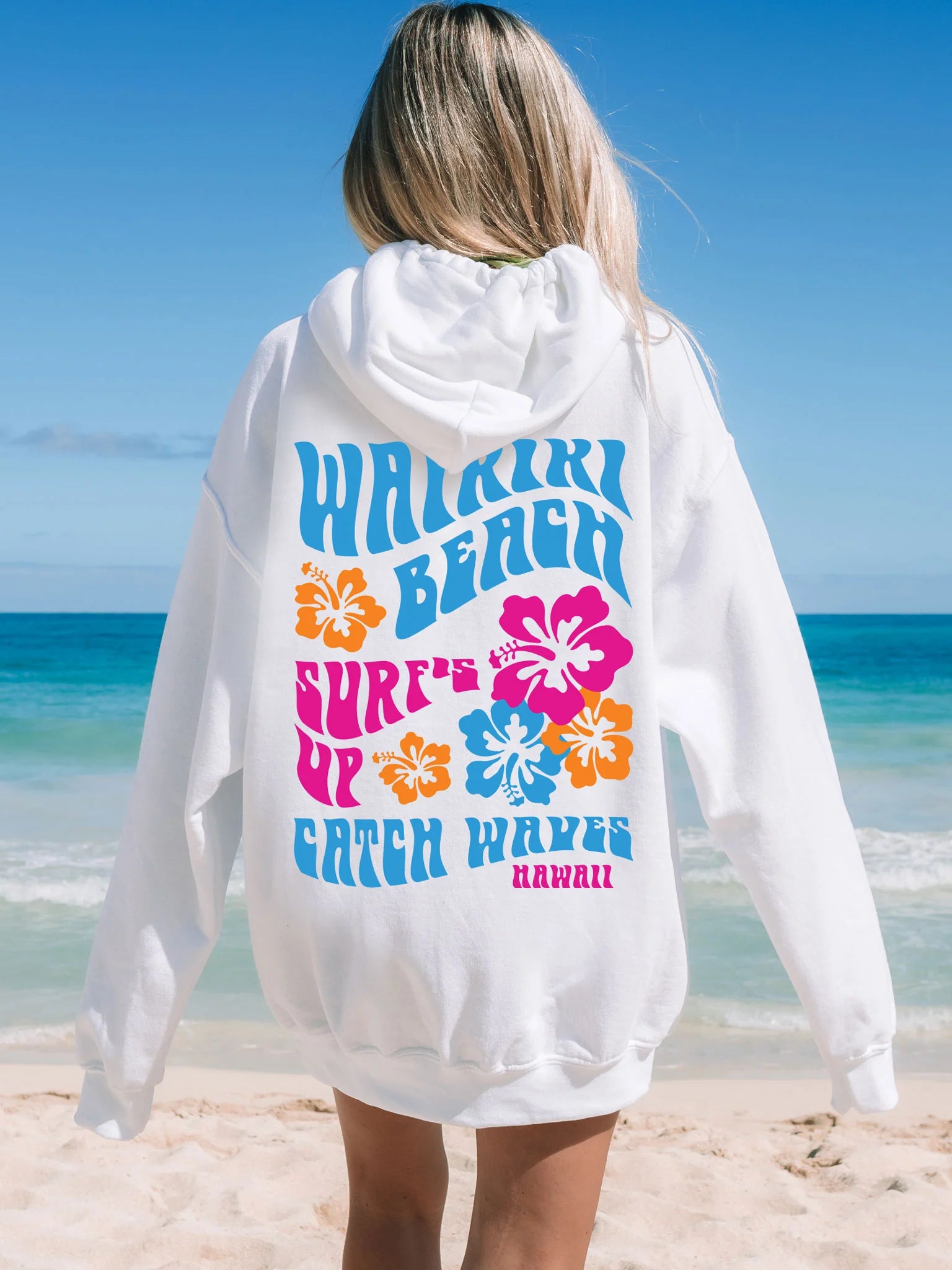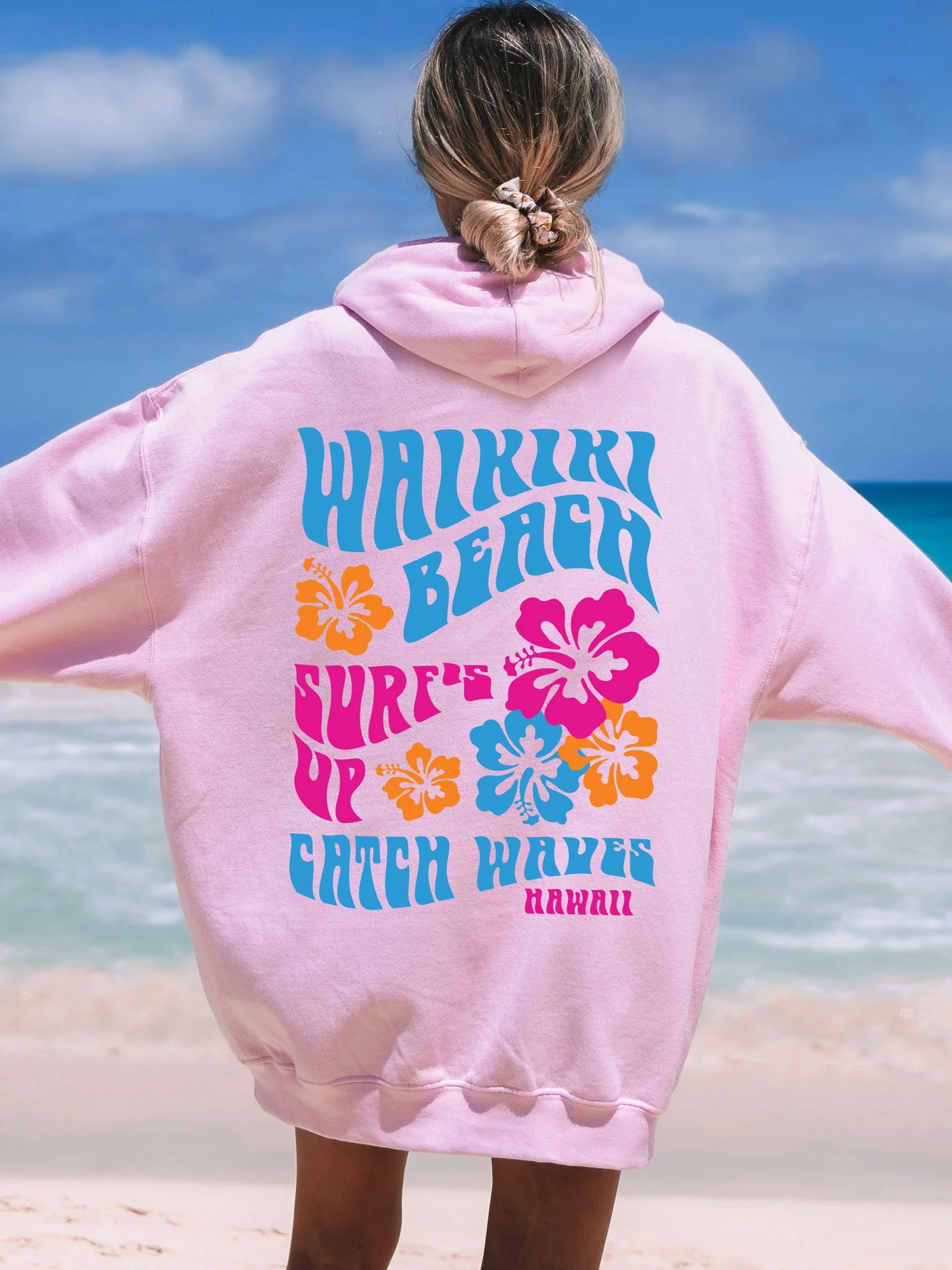 Embrace the island spirit with this adorable Coconut Girl Hoodie, featuring a vibrant Waikiki Beach Hawaii design. This unique hibiscus flower surf hoodie is the perfect blend of cozy comfort and laid-back style.